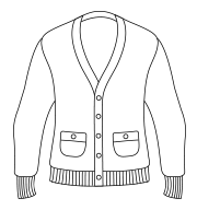 - Fine knit 12 gauge. Semi fashioned sleeves and neck detail. Horn effect dyed to match buttons. 1 x 1 neck, and cuff rib.